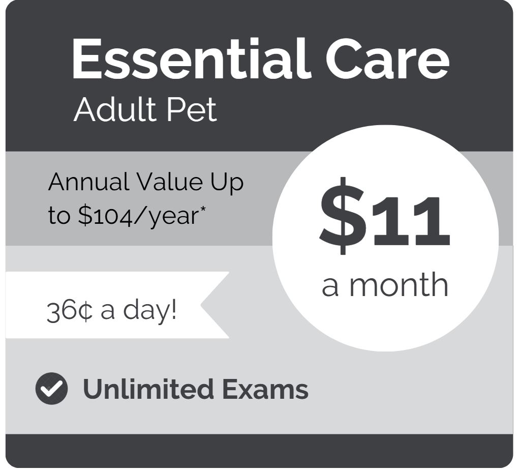 Want to keep your pet healthy while saving money? Our VIPet Plans offer three affordable options, each including unlimited exams. Starting as low as 36¢ a day, pick from our VIPet Plans that bundle routine exams, vaccines, and screenings—saving you up to $154 a year.
